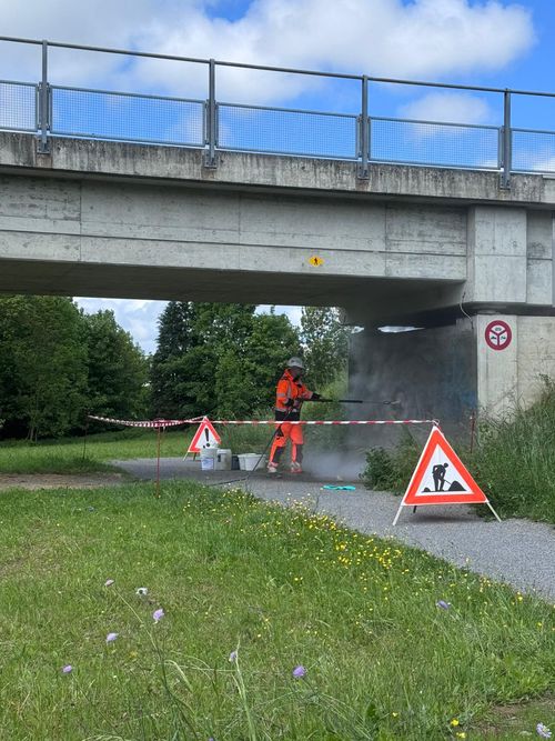 Les travaux comprennent l’élimination de graffitis, la réalisation de marquages au sol, des interventions de peinture ainsi que la mise en œuvre de protections de surface adaptées. Chaque intervention est pensée pour répondre aux exigences de durabilité, de résistance et de maintenance, tout en assurant une continuité visuelle et fonctionnelle des espaces concernés.